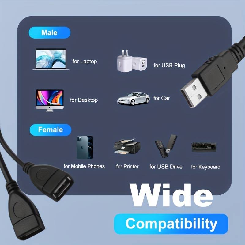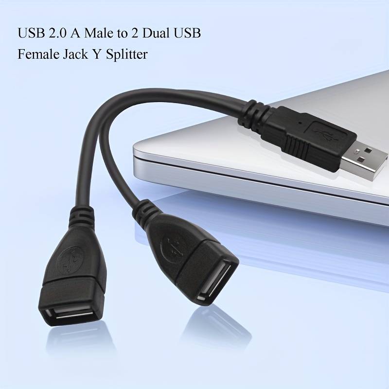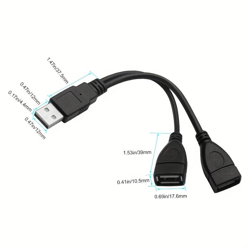 Câble USB 2.0, câble USB mâle à femelle en cuivre sans oxygène, PVC, séparateur USB, câble de chargeur USB, USB A 2.0 mâle à double USB femelle Jack Y Splitter câble de charge pour ordinateur portable/voiture/transmission de données/charge, etc